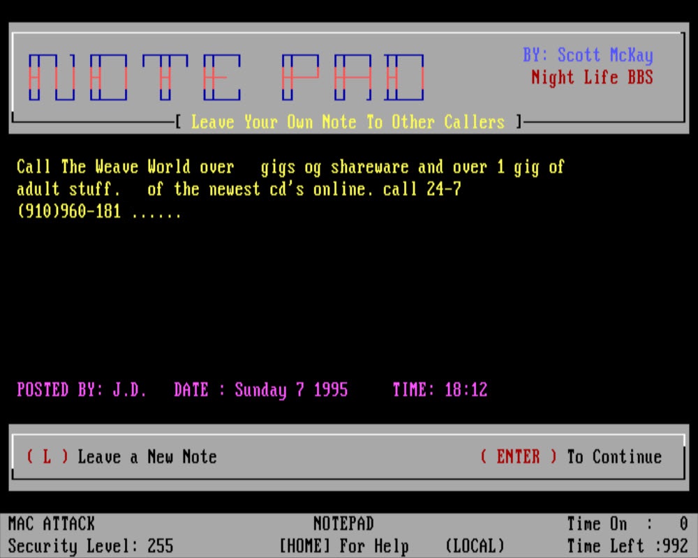 My old 1994 Bulletin Board System